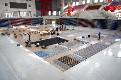 民警在黑龙江省饶河县一体育馆内清点缴获的窃听窃照器材。(饶河县公安局供图)