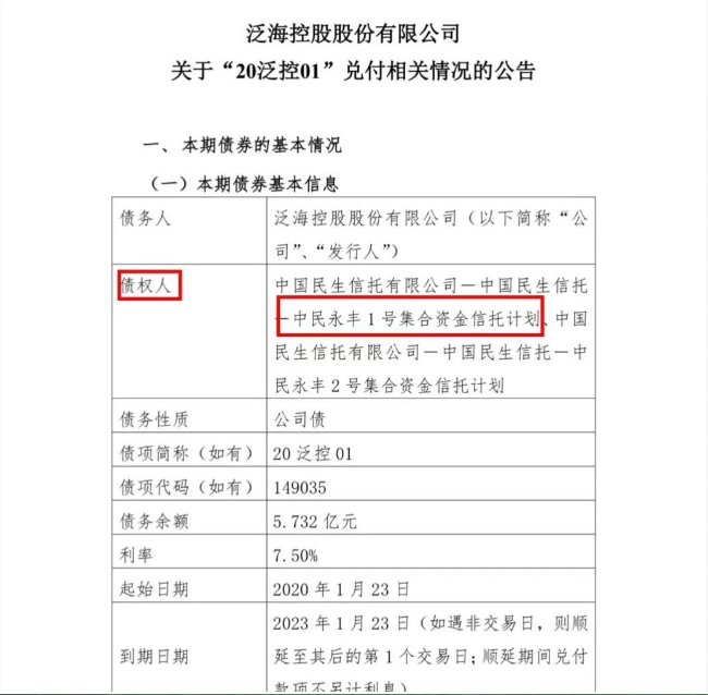 这些信托计划分别在2020年6月、7月、8月、12月以及2021年5月、6月和2022年的2月、8月到期。虽然洋河股份从未披露“民生信托-中民永丰1号”发生违约,但随着“20泛控01”债券发生违约,民生信托将大股东“泛海系”告上法庭后披露的“20泛控01”债券背后涉及的债权人主体正是“民生信托—中民永丰1号”及“民生信托—中民永丰2号集合资金信托计划”。