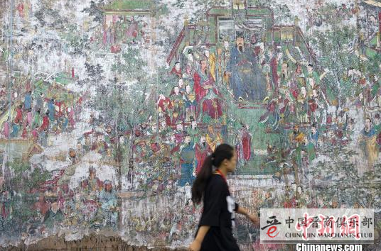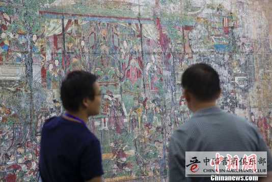 山西太原,一名民众正在观看山西永乐宫壁画。 张云 摄