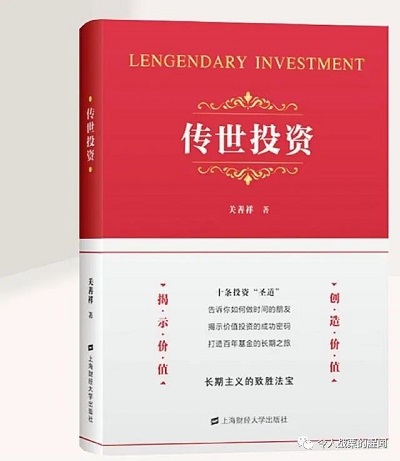 关善祥生前还有一个被大家津津乐道的行为,就是他还出版了一本专著,书名叫《传世投资》。在这本书中,关善祥现身说法,阐述如何进行价值投资,并主张投资即是人生修行,股票投资的本质就是人生哲学的修行,是践行价值投资之道。
