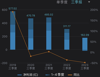 图1:中国人寿2019年至2023年三季度净利润数据变化,来源:WIND数据