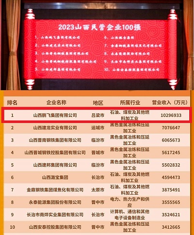 值得一提的是,在“2023山西省民营企业100强”,山西鹏飞集团凭借1029.69亿元营业收入,位列榜首,也是山西首家营收破千亿民企,成为名副其实的山西民企“一哥”。