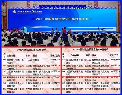 2021年9月,山西鹏飞集团有限公司以年营收567.8218亿元人民币,入选《2021中国企业500强》榜单,排名第354位,成为山西唯一入榜的民营企业。
