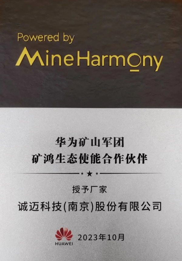 诚迈科技最新动态:获华为矿鸿生态使能合作伙伴授牌,携手共建智能矿山