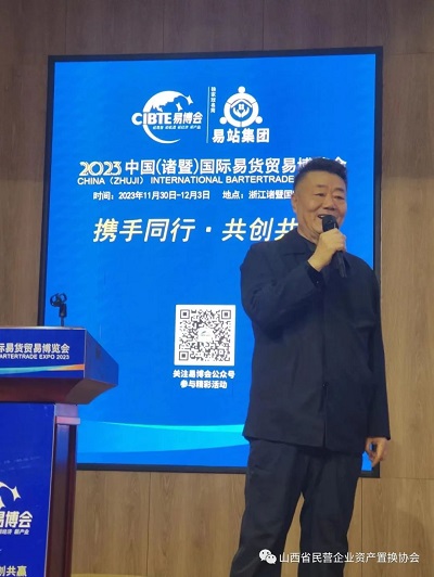 夏振贵书记首先感谢前来参加大会的各级领导与各界朋友,并介绍了山西省民营企业资产置换协会,资产置换就是易货贸易商业模式的具体的落地生根。“易博会”即将在浙江诸暨召开,通过平台让我们了解新信息,是一种新形势新业态,对我们也是一个新机遇,希望大家抓住机遇,促进自身企业发展,相互交流合作各取所需,建议参会和没有参会的大家通过媒体转发,让更多的企业精英知道前景广阔的易货置换的商业平台,让大家收获满满。