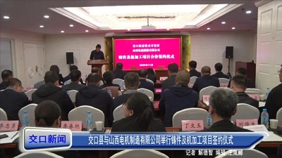 11月8日,交口县与山西电机制造有限公司在省城太原隆重举行铸件及机加工项目签约仪式。吕梁市委常委、副市长刘晋萍出席签约仪式并讲话。太原市国资委主任王清雨、交口县委书记刘惠民、山西电机制造有限公司董事长张文和分别讲话,交口经开区党工委书记、管委会主任李晓钦、山西电机制造有限公司总经理马利亚介绍合作项目情况。政府县长李刚主持签约活动。县四套班子有关领导和相关县直单位及乡镇参加签约活动。