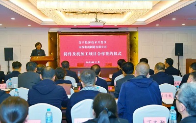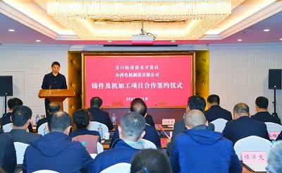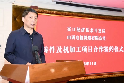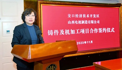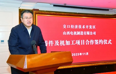 刘惠民在讲话中指出,交口县与山西电机厂高端铸造合作是“三优两区”优势工业战略的重大引擎,对交口工业经济和转型发展具有重大里程碑意义,将有力推动交口资源型经济向下游延伸,将真正引领交口优势工业向园区化、链条化、绿色化方向迈进。
