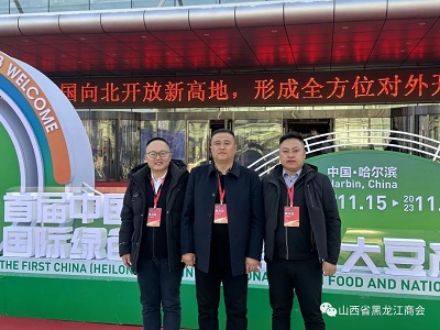 四海宾朋欢聚一堂,北国冰城喜迎盛会。11月14日至18日,首届中国(黑龙江)国际绿色食品和全国大豆产业博览会在哈尔滨国际会展中心举办。本届博览会由农业农村部、中国贸促会、黑龙江省政府共同主办。山西省政协委员、太原市小店区人大代表、山西省黑龙江商会(晋商俱乐部联合发起机构)会长、党支部副书记、山西龙商控股集团有限公司董事长张士维,本月轮值会长、执行会长、港中旅国际(山西)旅行社有限公司总经理姚利国,执行会长、山西金龙港酒店管理有限公司刘海龙受邀参加此次会议。