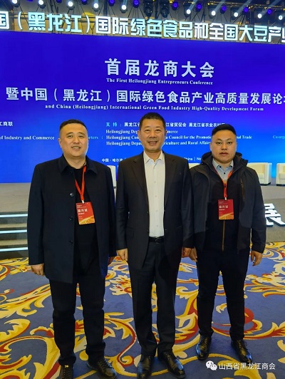 (左:山西省黑龙江商会会长张士维 中:龙商总会会长、飞鹤董事长冷友斌 右:山西省黑龙江商会执行会长刘海龙)