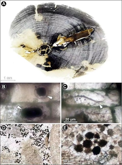 三是在树木内部发现了数量可观、结构精美的化石真菌和大量疑似甲螨粪便的化石;