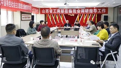 2023年11月15日,山西省工商联主席、总商会会长景普秋,山西省工商联办公室主任张文雅,山西省工商联机关党委三级主任科员马晋园莅临我会走访调研,并与山西省广东商会(晋商俱乐部联合发起机构)企业家代表进行了交流座谈。