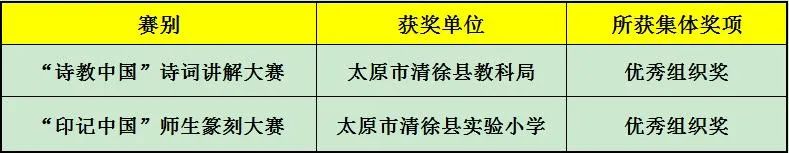 讲好中国话,写好中国字,做好中国人。第五届中华经典诵写讲大赛经过山西省教育厅和教育部、国家语委层层评选,成绩揭晓,清徐县荣获国家级奖项2个,省级奖项23个。其中,2位教师的作品荣获国家级等级奖;清徐县教科局荣获省级“诗教中国”诗词讲解大赛优秀组织奖,清徐县实验小学荣获省级“印记中国”师生篆刻大赛优秀组织奖,21位教师和学生的作品荣获省级奖。