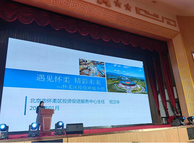 怀柔区投促中心主任司卫华围绕怀柔区的三张金名片”,从正在崛起的百年科学城、服务国家对外交往的国际会都和文化科技融合的中国影都三方面进行专题推介,并就怀柔产业发展规划、产业发展支撑两大点向与会者进行详细介绍。