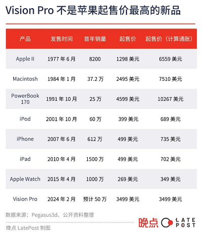 苹果上一次以这样的路径推动未成熟的新技术变成现实还是1984年。苹果发布Macintosh,以图形界面取代命令行,推动了个人电脑的普及。但它实在太贵了,2500美元的价格能买4台其他品牌的电脑,计算通胀接近两台Vision Pro。初代Macintosh是一款商业上失败的产品,乔布斯也在不久后被逐出公司。