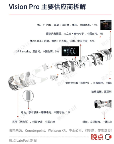 日本、韩国、中国台湾的企业供应了Vision Pro最核心的零部件。
