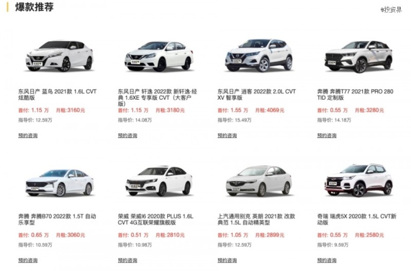 其中,直租是主打方式,用户需要支付新车的一成首付,选择36-60期月供还完,即可享用先用后付的买车服务。另外,考虑到小镇青年的用车需求和品牌偏好,花生好车的主推车型集中在售价10万元左右的经济适用车型。花生好车合作的汽车品牌包括EXEED星途、一汽奔腾、东风风神等,还有新能源车品牌零跑。