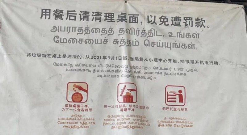 吃完饭没收拾桌子和餐具,在新加坡也算违法。
