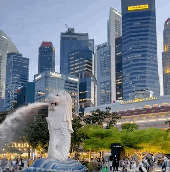 来到新加坡的地标性建筑鱼尾狮公园,还可以接到新年的第一波“财水”,祈求新年财运连连。