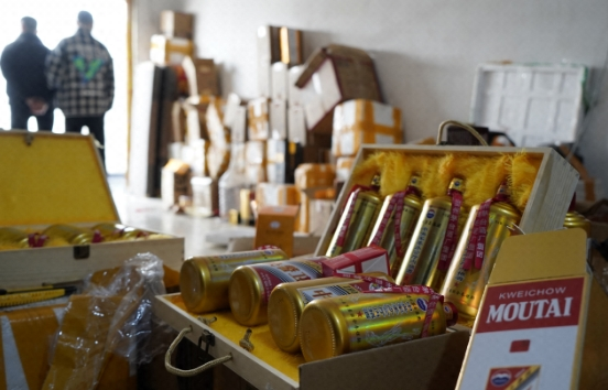 东方网记者薛宁薇2月27日报道:“中央军委办公厅内招酒”“国务院机关事务管理局机关服务局专用酒”……用散装白酒加香精、色素勾兑出来的基酒,酒瓶印上“特供”之类的字样,一瓶可以卖到上千元。在今天上海警方举行的发布会现场,警方通报了近期破获的多个以“特供”“专供”为噱头、制售假冒知名品牌白酒的犯罪案件。