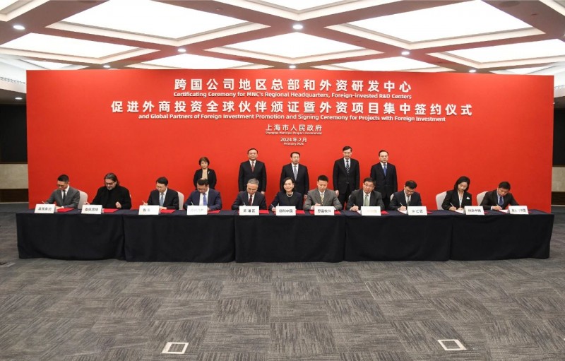 2月27日上午,跨国公司地区总部和外资研发中心颁证、促进外商投资全球伙伴颁证暨上海市外资项目集中签约仪式在市政府举行,上海市委副书记、市长龚正为促进外商投资全球伙伴颁证并见证外资项目集中签约并合影。黄浦区委副书记、区长沈山州参加颁证和签约仪式。