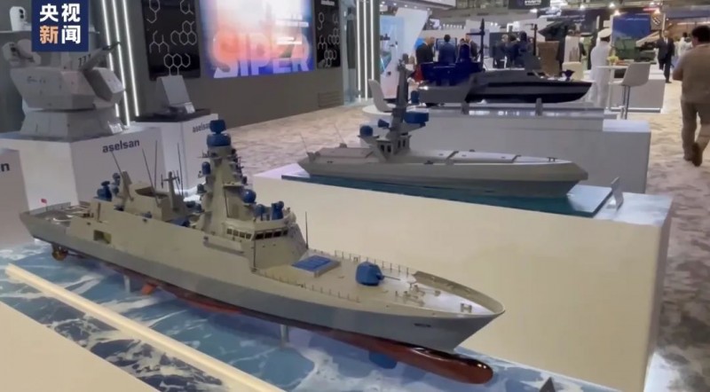 图片说明:土耳其公司Aselan展出“全球五大现代化护卫舰之一”的伊斯坦布尔级护卫舰模型央视截图