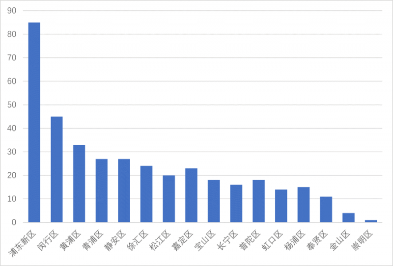 2023年新增3万平方米以上购物中心,浦东新区新增8家,普陀区新增3家,闵行区、嘉定区、徐汇区、松江区各新增2家,静安区新增1家。截至2023年底,购物中心数量最多的是浦东新区达85家,其次是闵行区45家,黄浦33家,青浦区27家,静安区27家,徐汇区24家,嘉定区23家,松江区20家,宝山区18家,普陀区18家、长宁区16家、杨浦区15家,虹口区14家,奉贤l1家,金山区4家,崇明l家。