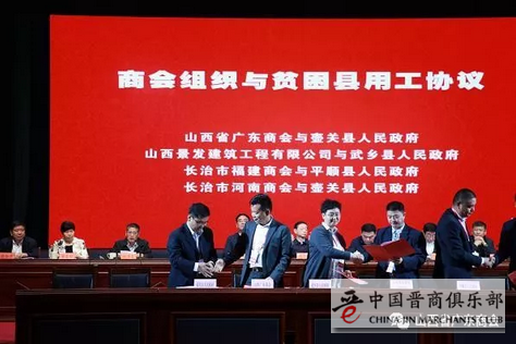 曾建新会长代表商会向光彩事业捐款,并与壶关县政府签订用工协议