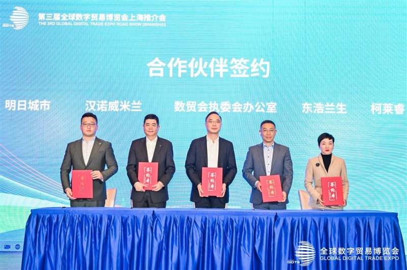推介会现场公布了今年的参展政策及开展一系列重要合作协议的签署。本届数贸会将采用市场化模式运营,并依据不同企业对象、不同时间节点提供不同力度的优惠政策。合作伙伴方面,本届数贸会将携手东浩兰生、汉诺威、柯莱睿、明日城市等全球知名企业,在招商招展(组展)、采购商及专业观众组织等领域进行深度合作。同时,与首批参展企业进行现场签约。截至到目前,本届数贸会已经吸引首批包括阿里巴巴、蚂蚁集团、泰尔茂、阿斯利康、中国农业银行、亚马逊等50余家中外顶级企业确认参展,为第三届全球数字贸易博览会吸引更多品牌企业、展商奠定了良好的基础。