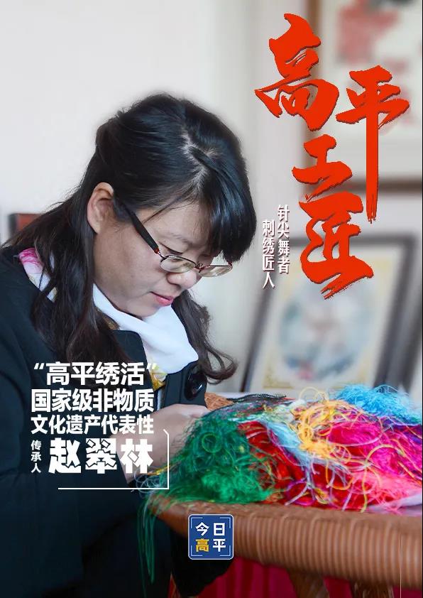 穿针、引线、刺绣,这样的动作陪伴了她无数个日夜;手指关节的变形和指尖的裂缝,烙印着道不完的艰辛;走过20多年的刺绣岁月,普通的线与布,在一上一下间被“唤醒”,经过她的巧手赋予灵魂和生命。从最初向全国供应刺绣产品的“订单式”到如今以研究为主的“创作式”,她始终坚守对刺绣的痴迷之心、热爱之心,以高平绣活独特的表现方式展现中华民族灿烂的人文历史文化。她就是赵翠林。