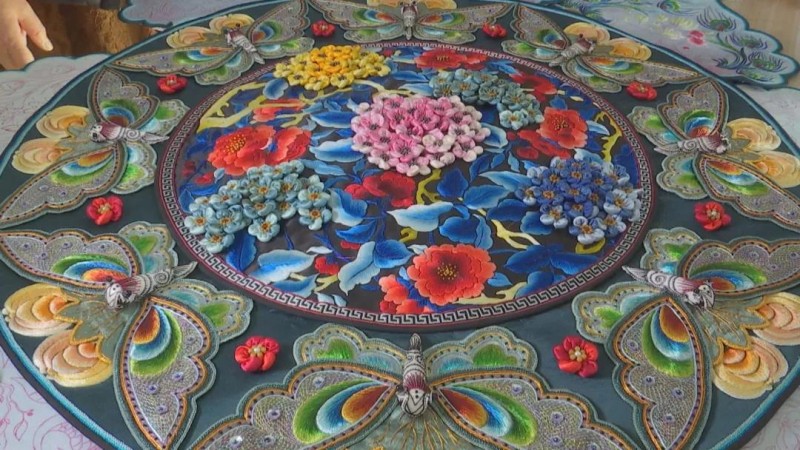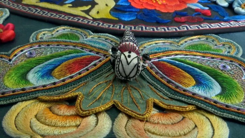 讲究的佛像,渔翁、织女、官吏等各色人物及亭台楼阁等各种建筑,细节繁多,为此,赵翠林只能边研究边创作,除了请教专家、翻阅书籍文献,还时常和团队的绣娘一起讨论用色、针法等。