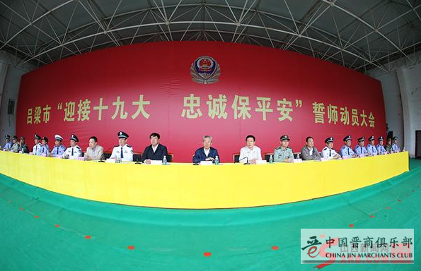 誓师动员大会上,“决战决胜”的口号声,声震四方,激荡人心。公安、武警、民兵预备役代表先后作了表态发言,纷纷表示,一定要牢记宗旨,不辱使命,忠诚履职,不负党和人民的重托,全警全力,全力以赴完成好各项安保维稳任务,誓保吕梁社会政治稳定。市委、市政府领导分别向各分县局、各警种和1+8专项行动组各牵头单位主要负责人授战旗。大会在雄壮的《中国人民警察警歌》中结束。