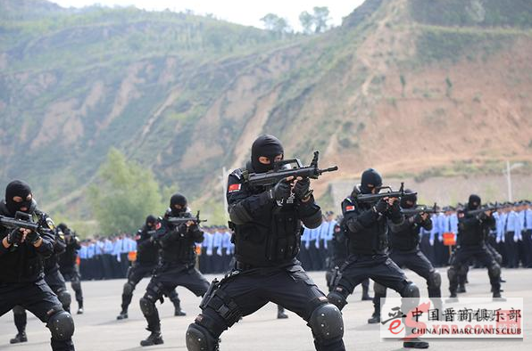 10月1日下午,吕梁市民兵综合训练基地号角铮铮、警徽熠熠,参演的20个战斗方阵警容严整,英姿飒爽。大会在庄严的国歌声中开始。离石、交城、石楼、孝义、柳林、武警6支队伍依次进行防暴处突演练。练兵场上,特警队员热情高涨,精神饱满,士气高昂,动作整齐划一,全面展示了全市公安机关警务实战训练的丰硕成果,彰显全市公安民警顽强拼搏、攻坚克难、敢打必胜的忠诚本色。