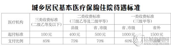 9月底,运城市政府发出《关于进一步完善城乡居民医疗保险政策的通知》(以下简称《通知》),决定在城乡居民医保制度整合实现“六统一”(覆盖范围、筹资政策、保障待遇、医保目录、定点管理、基金管理)的基础上,进一步提高运城市411.7227万参保群众的受益水平。《通知》自2017年7月1日起开始执行。
