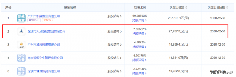 从天眼查可以看到,深圳市人才安居集团是恒大地产集团的第二大股东,持股7.05%。深圳人才安居的股份,正是从山东高速集团收购来的。