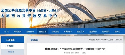 4月7日,记者从全国公共资源交易平台、太原市公共资源交易中心获悉,中北高新区上兰能源岛集中供热工程勘察招标公告已公示。项目总投资约32660.7万元。