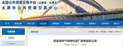 4月7日,记者从全国公共资源交易平台、太原市公共资源交易中心获悉,杨家峪燃气调峰热源厂勘察招标公告已公示,项目总投资额约37196.75万元。