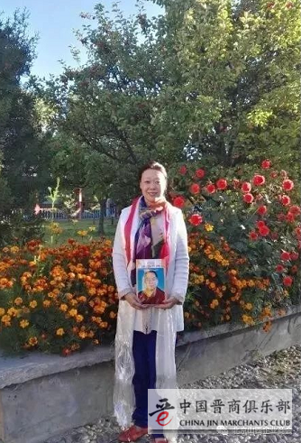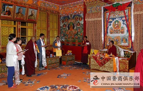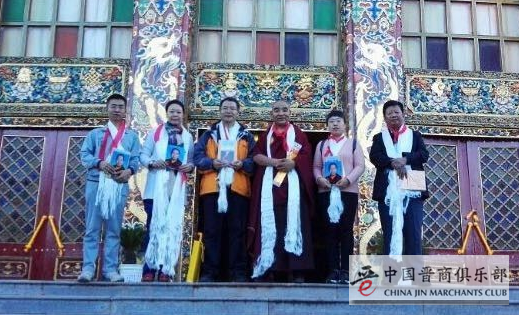 北京山西企业商会副会长买淑芳女士在十一世班禅驻地德庆格桑颇章留影纪念