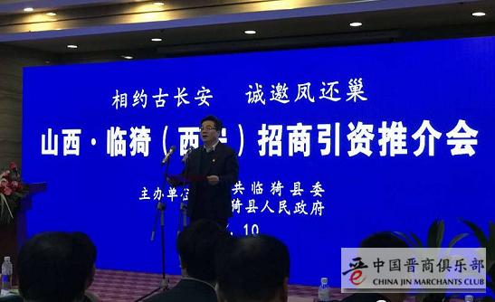 10月12日,山西•临猗(西安)招商引资推介会在北大街中心戴斯酒店5楼隆重召开。陕西省晋商商会(中国晋商俱乐部联合发起机构)临猗籍会员、在陕临猗籍政界老领导、各界成功人士等50余人参会。