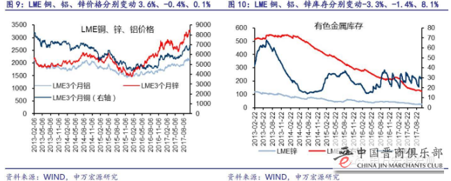 有色:价格库存涨跌不一。本周LME铜、铝、锌价格分别变动3.6%、-0.4%、0.1%;LME铜、铝、锌库存分别变动-3.3%、-1.4%、8.1%。