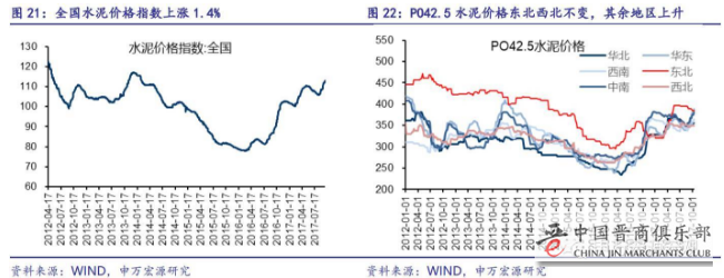 水泥:价格上行。与9月29日比,全国水泥价格指数环比上涨1.4%,其中东北、西北、西南、华动、中南均上涨;本周PO42.5水泥价格东北、西北地区不变,其余地区上升。