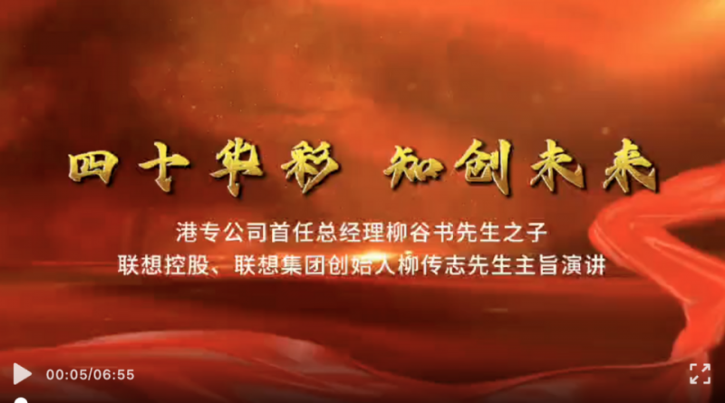 4月30日,据《中国贸易报》报道称,在近日举办的港专公司成立40周年暨国际知识产权服务研讨会上,联想控股、联想集团创始人柳传志以视频的方式发表了以《四十华彩 知创未来》为主题的主旨演讲。