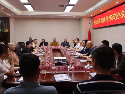 座谈会上,赵文闪会长代表山西省福建商会对泉州市政协宗教界别调研组的到来表示热烈欢迎,详细介绍了商会的工作开展情况,并就民族宗教领域推进晋闽两地交流进行了深入探讨。
