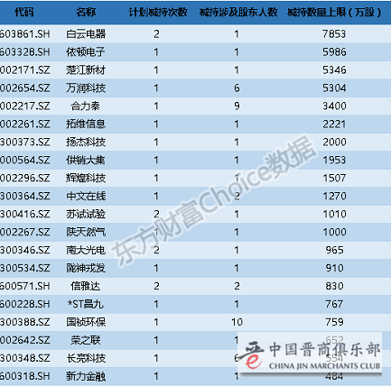 节后部分已经发布减持计划的公司: