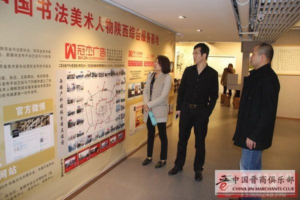 在岳恺平董事长陪同下,刘文斌秘书长参观了冠杰文化旗下的“中国保真书画交易平台易墨轩”作品展示中心,岳恺平董事长向刘文斌秘书长介绍了冠杰文化户外路牌广告、电梯框架广告、大屏电子广告的基本情况,冠杰文化的路牌广告已经处于西安领头羊地位,占据了高比重的市场。