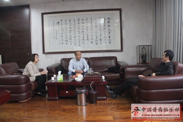 会见结束前,中国晋商俱乐部秘书长刘文斌邀请岳恺平董事长出席将于12月28日在北京召开的“2014第六届晋商年会”,并且与岳恺平董事长、白雪敏主任合影留念。