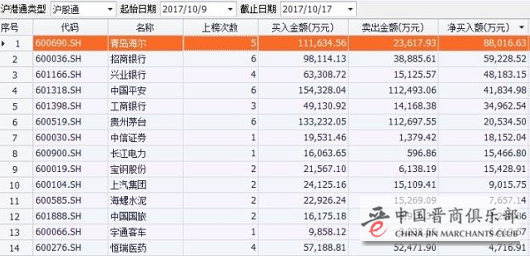 北上外资重点抢筹白马蓝筹股,其中,沪股通方面,节后共有17只个股实现沪股通资金净流入,青岛海尔、招商银行、兴业银行、中国平安和工商银行等5只个股期间累计沪股通净流入金额均超过3亿元。