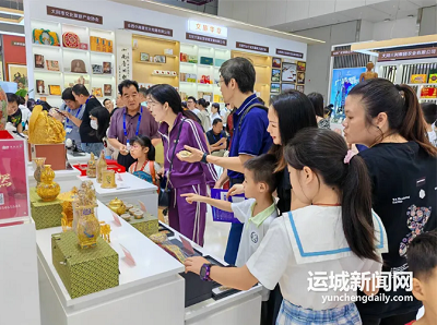 5月26日,在深圳文博会山西展馆稷山县昌裕工艺品有限公司展台,深圳市民丁女士询问。