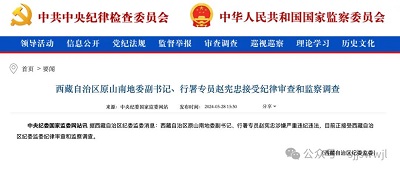 5月28日,据中央纪委国家监委网站消息,西藏自治区原山南地委副书记、行署专员赵宪忠涉嫌严重违纪违法,目前正接受西藏自治区纪委监委纪律审查和监察调查。