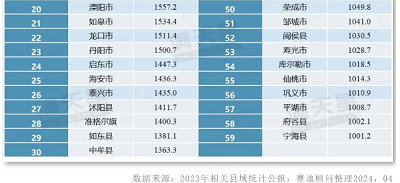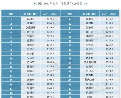 相较于2022年,千亿县的数量增加5个,扩容至59个。