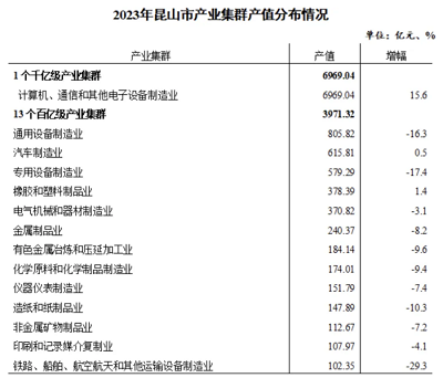 到2023年,千亿产业集群的产值已经增加至6969.04亿元,百亿级产业集群增加至13个。
